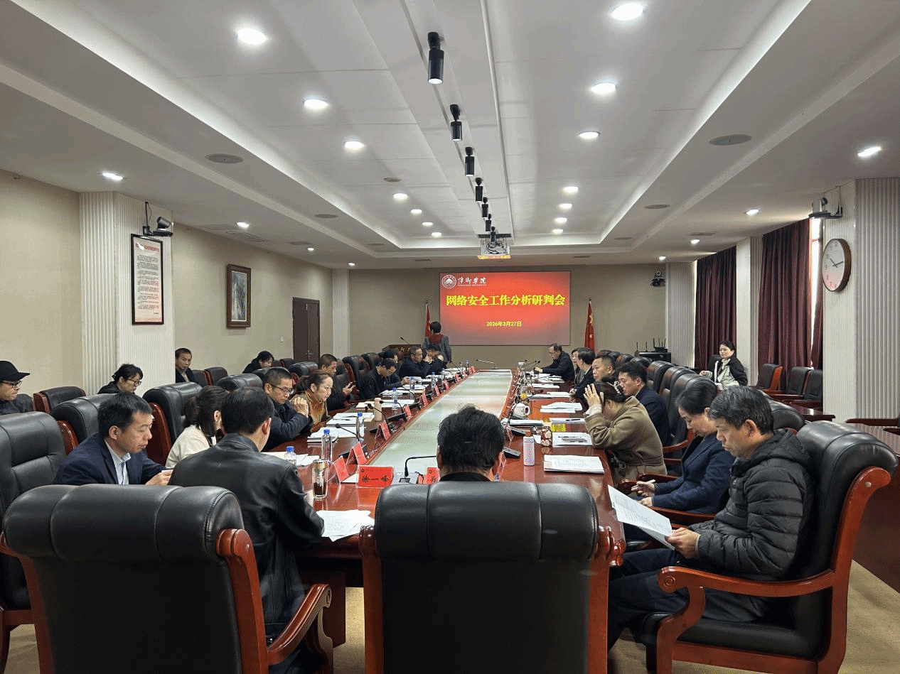 2026年3月27日,萍乡学院2026年第一季度网络安全工作分析研判会于至善楼第一会议室召开。校党委副书记陈永国,党委委员、副校长刘培圣,党委委员、组织部部长王林清,党委委员、宣传部部长曾敏,党委委员、统战部部长贺晓梅出席会议。学工处、保卫处、网教中心等部门负责人及各二级学院党委书记参加会议。